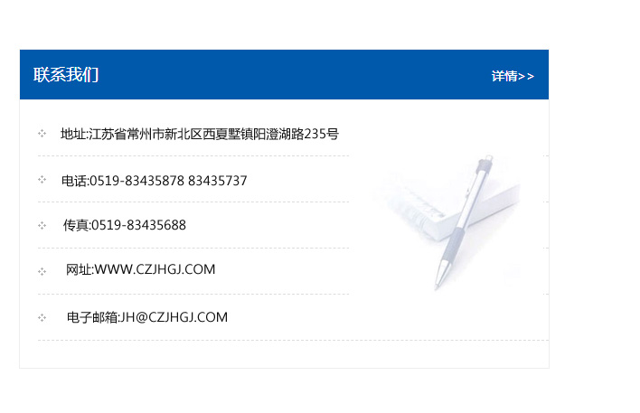 地址:常州市新北區友邦商務大廈1幢16、17層  電話:0519-85101652  傳真:0519-85112595  郵編:213022  網址:www_xincj_com.7myg.com  郵箱:xiajifengaa@163.com